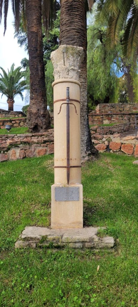 Subiendo al barrio de la Villa pudimos ver una réplica de la espada del Cid Campeador, la Tizona. Sujeta a una columna, nos recuerda un trozo de la historia de este pueblo. Aquí venció el Cid al ejército del entonces Rey de Granada, en la llamada La Batalla de Cabra.