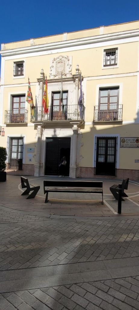 Paseábamos ahora por el centro neurálgico de Cabra, en los anexos al Ayuntamiento y la plaza en la que se ubica, lugar elegido para un breve descanso tomando un café. Pasamos frente a la Casa Natal de Don Juan Valera que alberga en la actualidad el Conservatorio de Música.