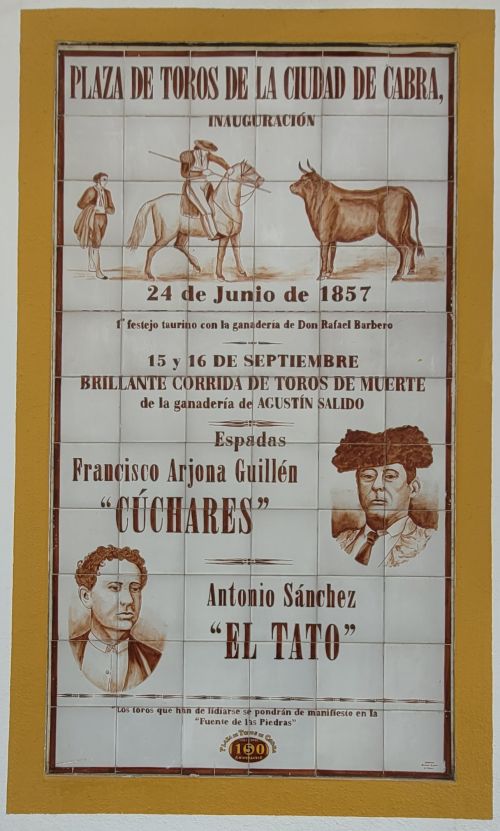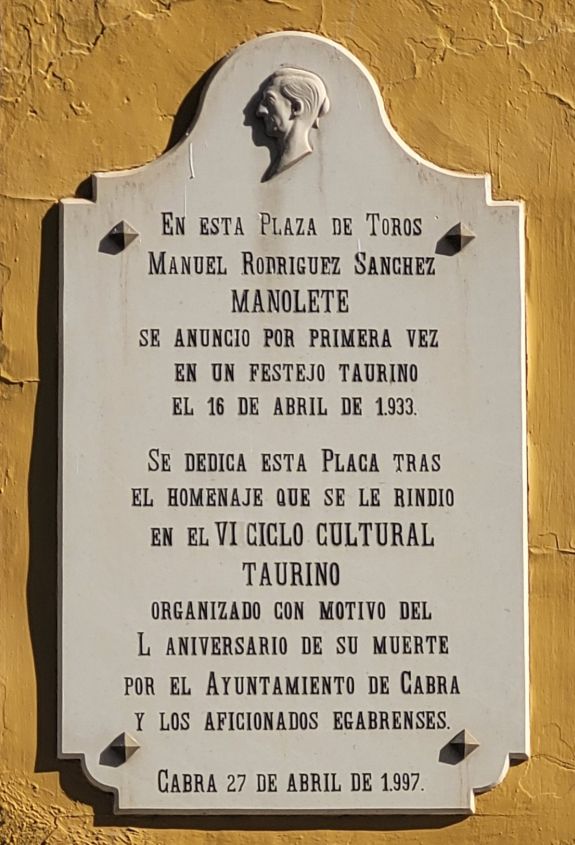 Y más tarde a la Plaza de Toros de Cabra, conocida por ser la más antigua en Córdoba y su provincia. La parte exterior la forman 16 caras de un polígono y como curiosidad, en esta plaza debutó Manolete un Domingo de Resurrección de 1933.