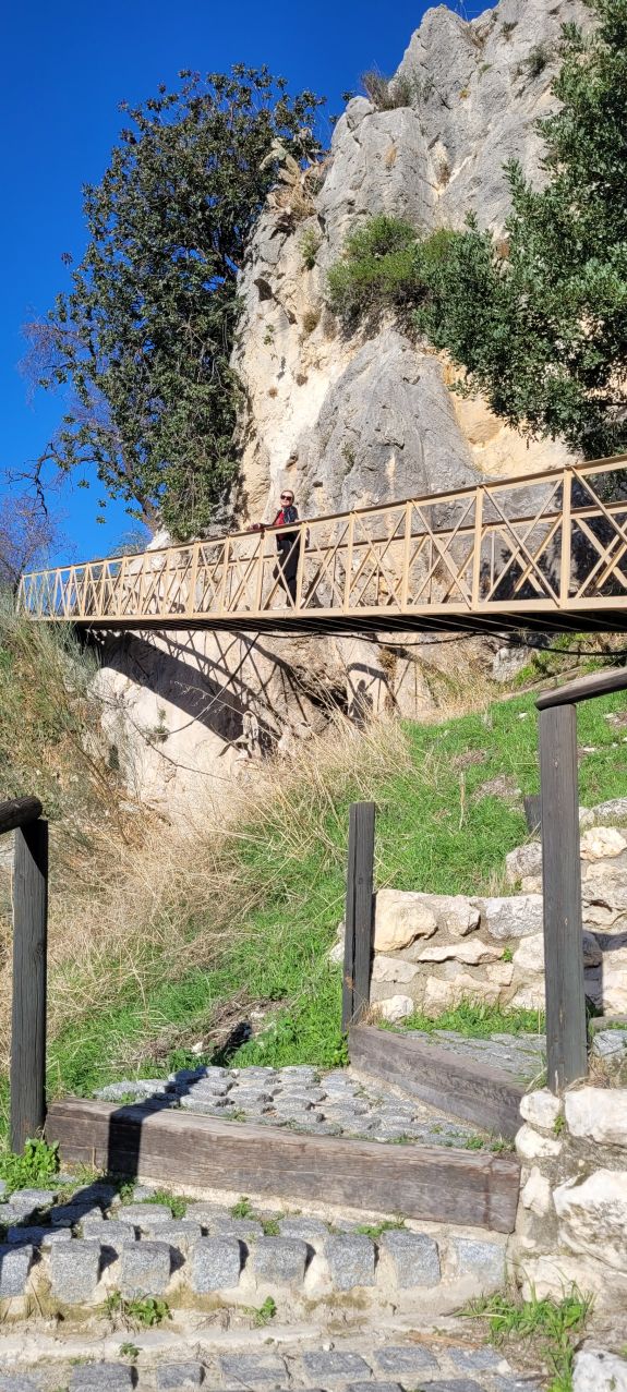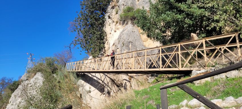 Al llegar, bajo las faldas del Castillo, encontramos un puente colgante que forma parte del Parque Periurbano, un bonito paseo de pasarelas, miradores y senderos que rodea la zona baja del pueblo.