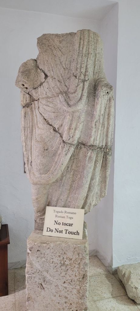 En nuestra breve visita al Museo Arqueológico encontramos una muestra de objetos encontrados en la Cueva de los Murciélagos de distintas épocas. Entre ellas del paleolítico, neolítico y calcolítico o de la Edad del Cobre, de Bronce y de la Romana.