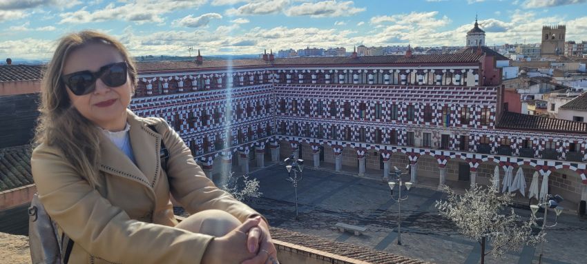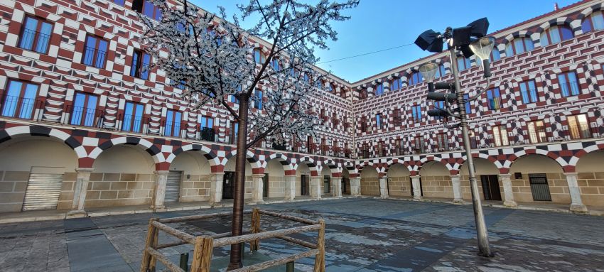 La Plaza Alta además se encuentra rodeada de muchos otros edificios y puntos destacados. A su espalda se encuentra la Alcazaba y pocos pasos después daremos con lo que fue el Ayuntamiento Viejo. También pudimos disfrutar de las Casas Mudéjares y las Casas Coloradas, uno de los mayores emblemas de la Plaza Alta que acaba de ser restaurado para recuperar todas las formas geométricas de la fachada, que se encontraban deterioradas, y que puedan volver a lucir con todo su esplendor bajo los rayos de sol frecuentes de esta ciudad extremeña. Las Casas Coloradas habían permanecido mucho tiempo ocultas como consecuencia de la construcción de una serie de viviendas locales que se habían realizado, pero se trata de un impresionante edifico mudéjar compuesto de cuatro arcos de herradura, escenario del antiguo Ayuntamiento de la ciudad.