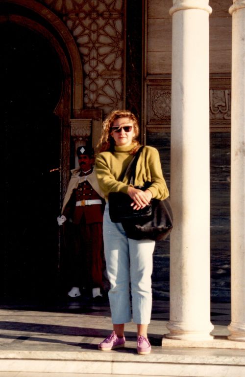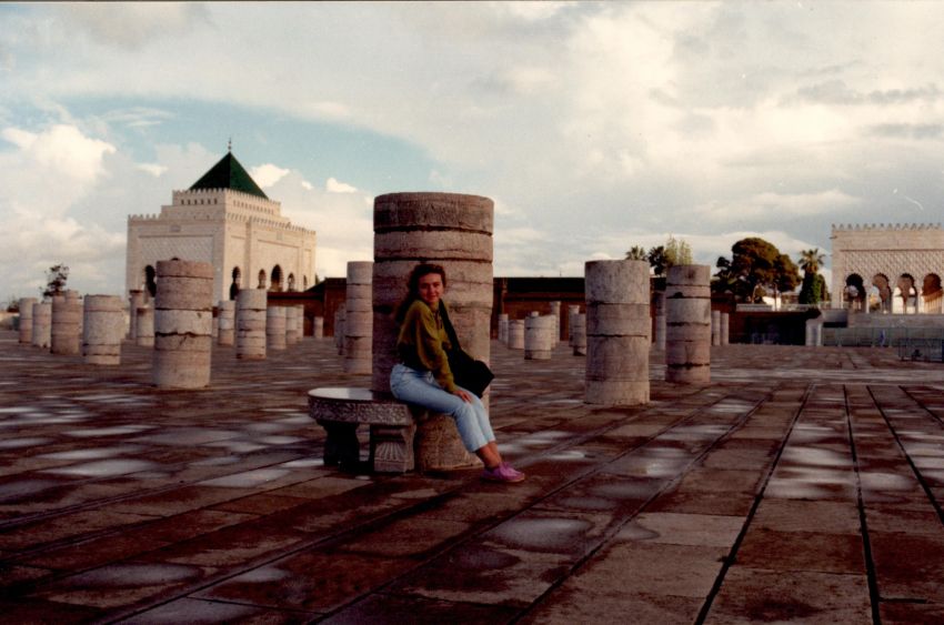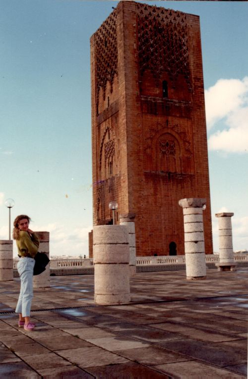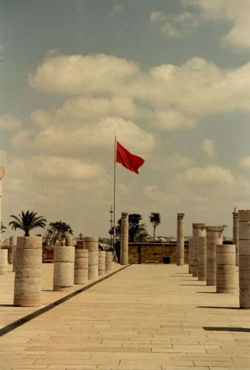 Teníamos algo de tiempo para visitar la ciudad y optamos por acercarnos a la explanada de la Mezquita Inacabada donde te sorprenden -como si fuesen centinelas haciendo guardia- unas enormes hileras de columnas solitarias bajo el cielo de Rabat, con diversos tamaños que deberían de haber sustentado una enorme mezquita con capacidad para 40.000 fieles con su alminar (que debería alzarse a los 80 metros de altura).