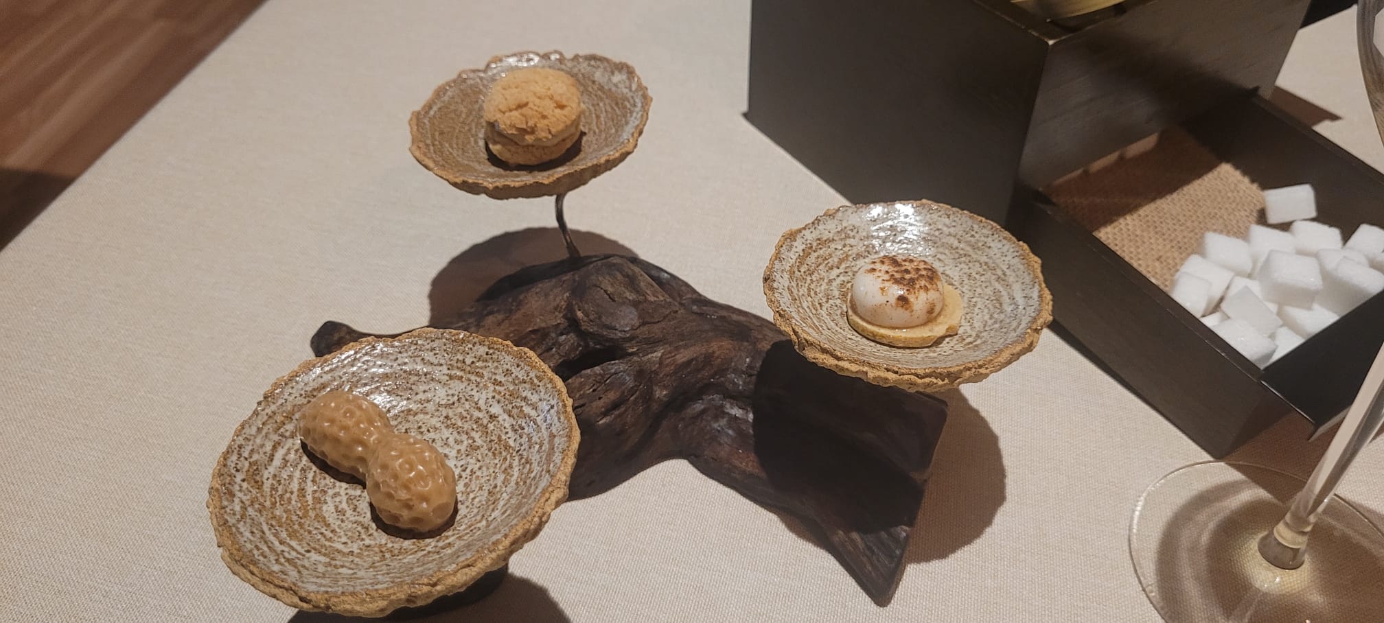 Para finalizar el menú, los ya típicos “Petit fours”, que el propio Marco Antonio nos trajo a la mesa y nos presentó. Momento para conversar con el chef y felicitarle por los reconocimientos conseguidos, y para comprobar cómo tanto él como María no solo alimentan el cuerpo sino que también lo hacen con el alma, el alma que ponen en cada uno de los bocados que fueron desfilando ante nosotros. Y la pasión que se adivina en cada una de sus palabras.