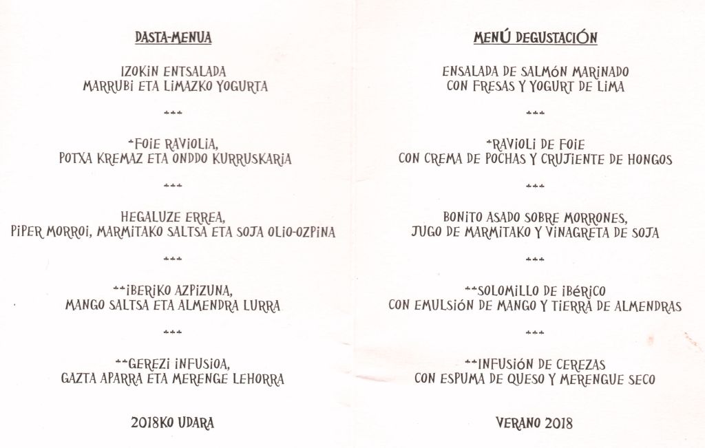 Imposible reservar en Akelarre, Arzak, Martín Berasategui, Azurmendi o Mugaritz con los plazos que nos movemos nosotros en nuestros viajes. Pero nos apetecía probar la cocina vasca, más aun si su menú degustación promete “disfrutar de toda nuestra cocina por un precio especial, sin perderte ni una sola de las experiencias que te haremos vivir a través de tu paladar. ¿Vienes?” ¡Vamos!