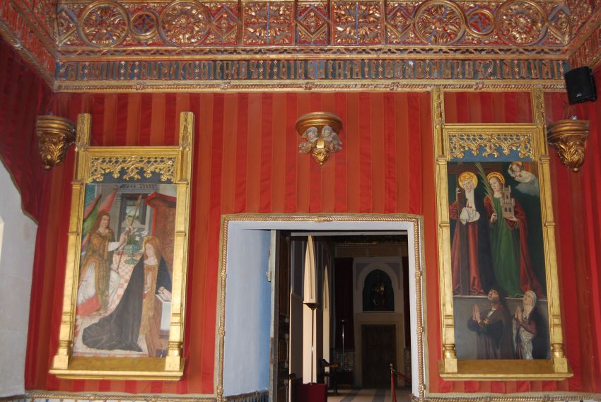 Anexa a la habitación anterior se encuentra la Sala de las Piñas, denominada así por las piñas que aparecen representadas en el artesonado. Destaca el friso inferior realizado en yeso dentro del estilo gótico-mudéjar. Seguidamente se accede a la Alcoba del Rey, sala donde se simula la habitación real, compuesta por una cama de madera de nogal bajo un dosel rojo.