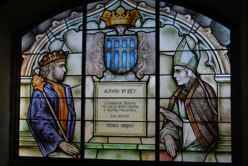 La historia del Alcázar de Segovia se remonta al siglo XII. El primer documento escrito que hace referencia a la fortaleza es del periodo de Alfonso VII, sin embargo, la construcción del palacio, en ese mismo siglo, se atribuye al reinado de Alfonso VIII, monarca que aportaría una decoración claramente hispano-musulmana de aspecto cisterciense. En la centuria siguiente Fernando III y Alfonso X realizaron varias ampliaciones. El aspecto actual del Alcázar tiene lugar durante los reinados de Juan II y Enrique IV, ya en el siglo XV. A finales del siglo XVI, durante el reinado de Felipe II, Francisco de Mora reformó el Patio de Armas y sería el encargado de colocar los chapiteles y tejados de pizarra. Debido a las continuas reformas realizadas en el complejo entre los siglos XII y XVI, se pueden apreciar elementos de diferentes estilos artísticos: románico, gótico, mudéjar y renacentista.