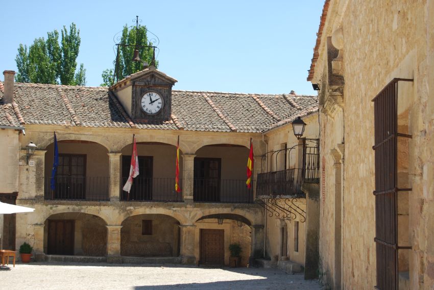 Y qué mejor lugar para comer que la Plaza Mayor de Pedraza, una plaza porticada coronada por la Iglesia de San Juan Bautista (siglo XIII) cuya única puerta de entrada era la antigua cárcel. La plaza de Pedraza es irregular en su forma y creada para que las familias nobles de la villa disfrutaran desde sus balcones, de los festejos taurinos celebrados desde 1550. Todavía se conservan los palacios y casonas de las familias que allí vivieron, datadas en los siglos XVI y XVII.