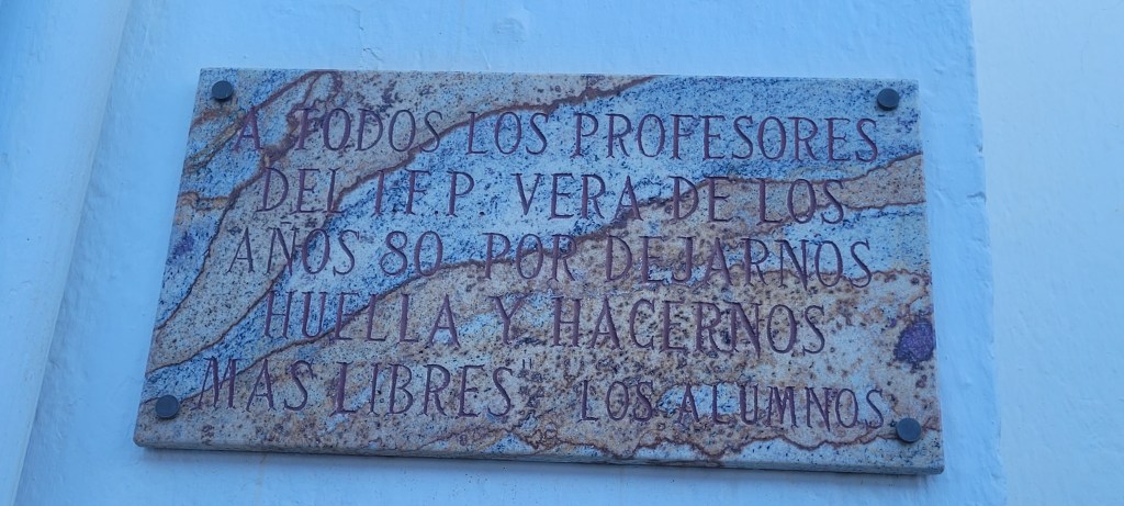 Abandonamos el restaurante bien entrada la tarde, tras decidir que no podíamos terminar la jornada sin dar un paseo por Vera. Al llegar dejamos los coches en las inmediaciones del instituto.