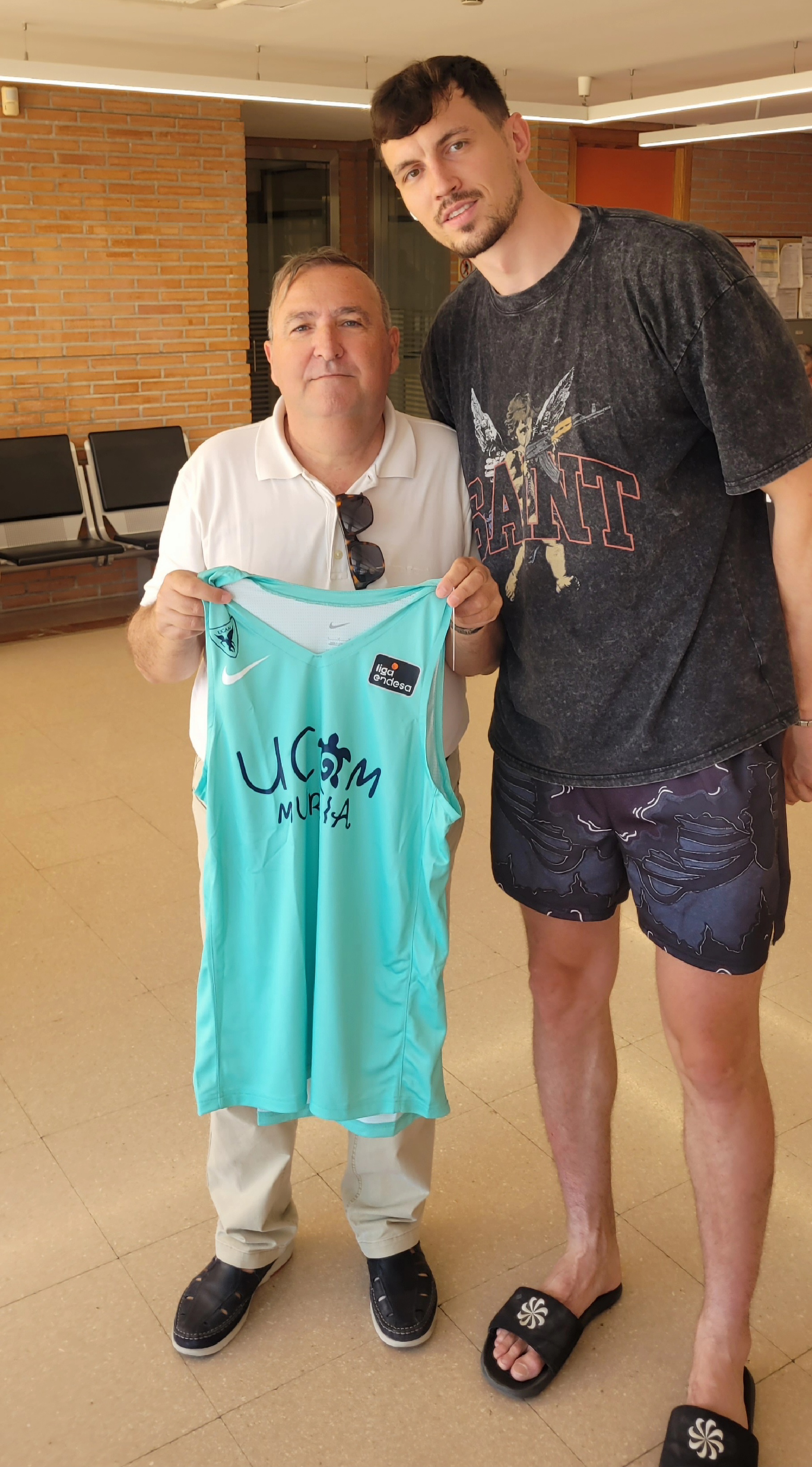 Tras varios días intentando que la camiseta oficial del UCAM Murcia 2024-25 fuera entregada por algún jugador de la plantilla, el periodo vacacional lo impidió, aunque las casualidades del destino quisieron que el día de la recogida en las oficinas del club nos encontráramos con Rodion Kurucs, cumpliendo nuestra petición.