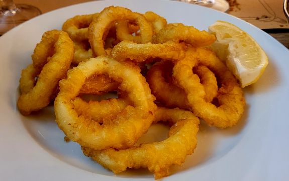En Can Roca ofrecen un Menú del Día por tan solo 17 euros con comida casera de todo tipo, incluyendo platos catalanes. Empezamos por una riquísima ración de calamares a la romana (fuera de menú).