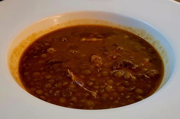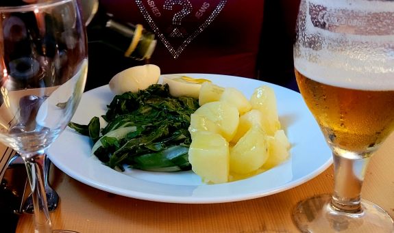 De primero probamos unas exquisitas lentejas y una verdura del día que encandiló a May.
