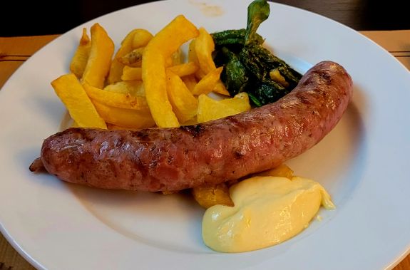 De segundo, una típica butifarra catalana con su guarnición y un potente guiso de sepia y albóndigas.