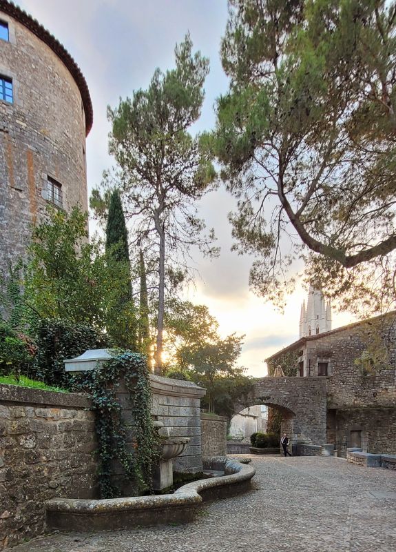 En esta ocasión descendimos hacia la plaza del Vi, un concurrido espacio delimitado por soportales, por el denominado Palacio del General, edificio gótico-renacentista que fue la sede de la administración de la Generalitat en las tierras de Girona durante los siglos XVI y XVII, y por el Ayuntamiento y el Teatro Municipal, destacado coliseo ochocentista.