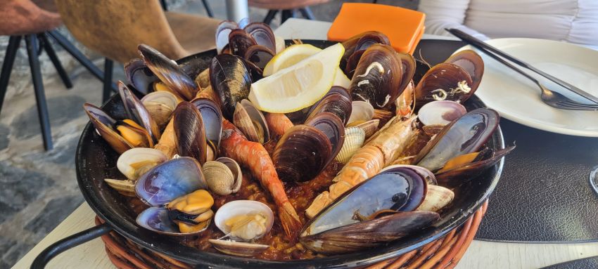Después de barajar varias opciones, en el Restaurante Sa Roca d’es Tamariu nos garantizaron que comeríamos en menos de una hora que quedaba para tener que presentarnos en la casa museo. Las excelentes vistas, en primera fila frente al mar, invitaban también a ello.