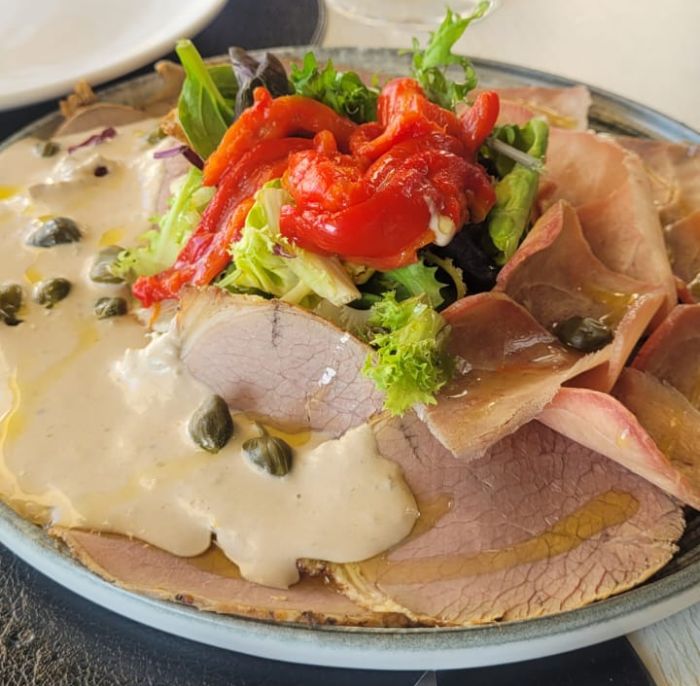 Una ensalada vitello tonnato y carpaccio de atún y una paella marinera con marisco y sepia nos sentaron de maravilla después del temprano desayuno que habíamos tomado en el hotel antes de nuestra salida hacia Figueres.