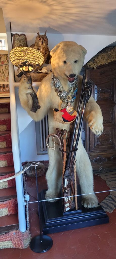 Decir que todo es sorprendente en la casa museo de Dalí de Portlligat es quedarse corto. Nada más entrar te saluda un oso polar disecado, para irse haciendo una idea. Ése es el vestíbulo del Oso. A partir de ahí, el surrealismo se hizo con nuestras mentes y, antes de salir, ya nada nos parecía demasiado extraño como para estar en esa casa. Según nos contó nuestra guía en la visita guiada, todos los objetos que hay en la casa son originales, excepto los libros y los cuadros.