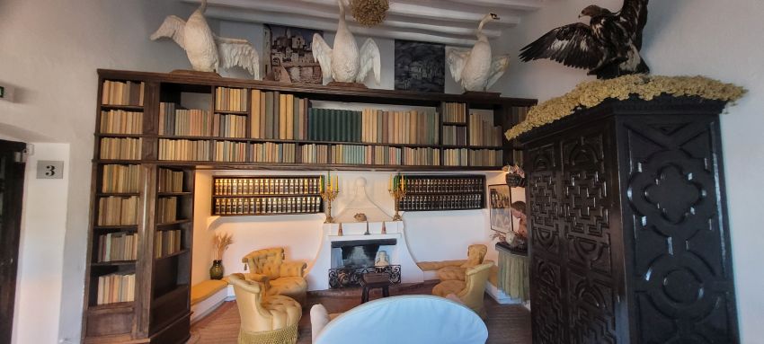 Del vestíbulo del Oso se llega al comedor y, desde él, a la biblioteca que da paso a la primera terraza de la casa. De vuelta al vestíbulo por una sinuosa escalera se accede a la segunda planta, donde se encuentran el resto de salas “privadas”, su habitación entre ellas, y el estudio.