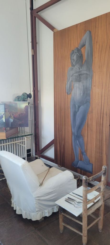 Dos cuadros quedan en el estudio de Dalí en Portlligat sin acabar. El estudio era, y es, la sala más luminosa de la casa. En una sala adyacente todavía se conservan sus tubos de pintura, blocs de dibujo, barnices, cuencos de mezclas…