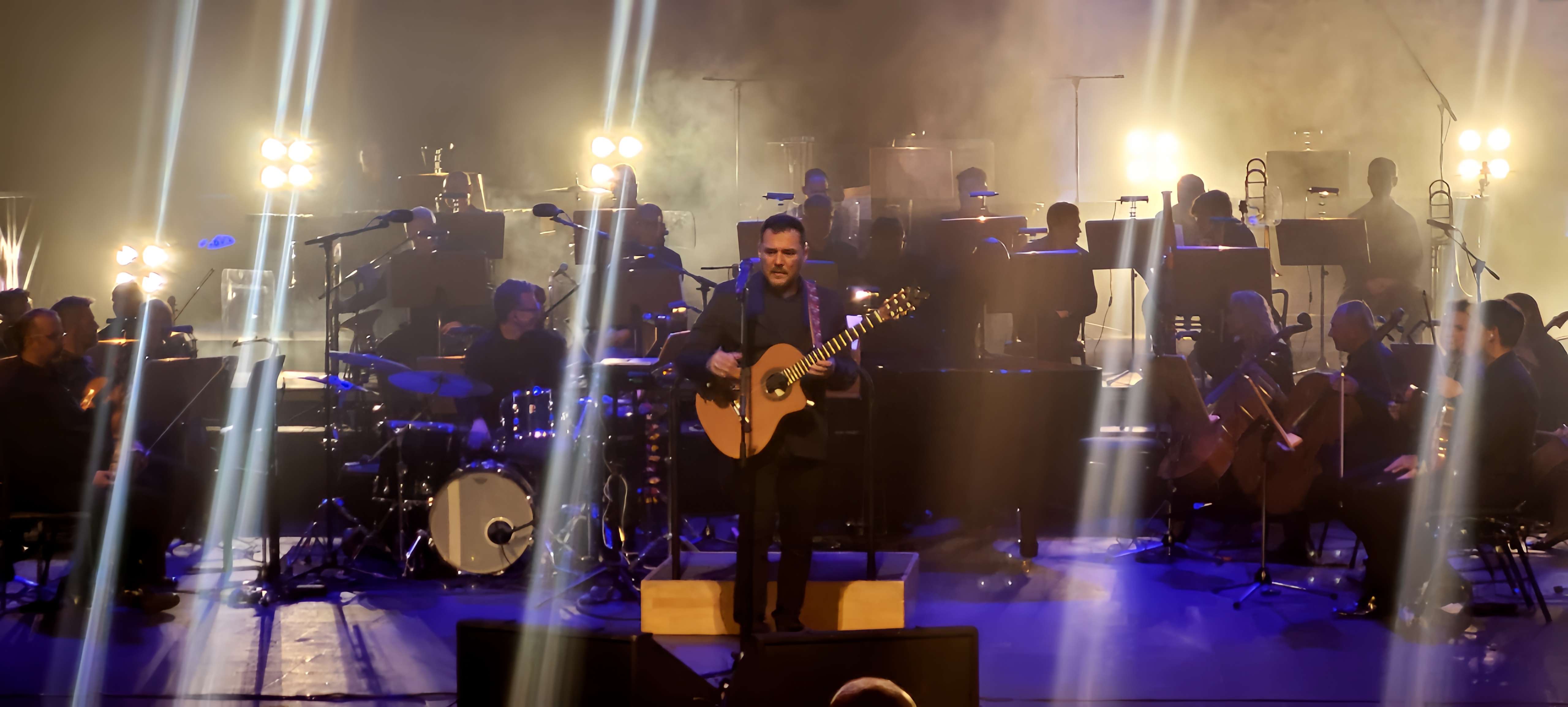 Cuentan que Ismael vivía fantaseando con añadir a sus composiciones el toque mágico que solo una orquesta sinfónica puede ofrecer. Este fue el punto de partida de Ismael Serrano. Sinfónico, algo que, en sus propias palabras «se había vislumbrado en algún concierto puntual, pero no en un disco como este y, menos aún, en una gira como la de este 2025«. Y el Auditorio Víctor Villegas fue anoche uno de los destinos de este viaje musical por los temas más representativos de una trayectoria que abarca, ni más ni menos, que treinta años.