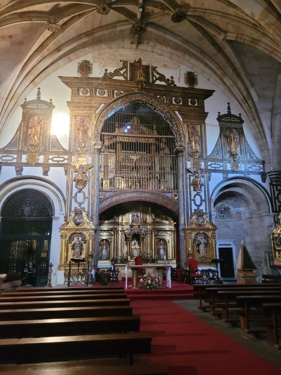 Se acercaba la hora de cierre de las iglesias pero teníamos tiempo de visitar la de Santo Tomé, básicamente románica, excepto el hastial y buena parte del muro Sur, que son obra del siglo XVIII. Hay que reseñar que la iglesia fue monasterio. En el siglo XVII, las tres naves originales se convirtieron en una sola con cubierta a dos aguas, sostenida por dos enormes arcos, siendo objeto de pleito en el siglo XVIII entre el Cabildo y Obispado sobre su jurisdicción.