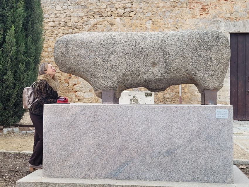 A las puertas del alcázar se encuentra uno de los «monumentos» emblemáticos de la ciudad, su «Toro de Piedra», una figura esculpida en granito perteneciente al grupo de esculturas denominadas «verracos», monumentos de la etapa final de la Edad de Bronce y principios de la Edad de Hierro, signo reconocible de los Vettones, un pueblo prerromano de cultura celta asentado en el territorio entre los ríos Duero y Tajo. El término «verraco», viene del latín «verres», y significa «cerdo padre», aunque las esculturas agrupadas bajo este término de verraco, no sólo representan cerdos, sino también toros, como es el caso de esta escultura. Hay diferentes hipótesis sobre su finalidad: como hitos que establecían los límites del territorio o demarcadores de la zona de pasto, figura de culto para proteger al ganado o incluso alguno las consideran monumentos funerarios.