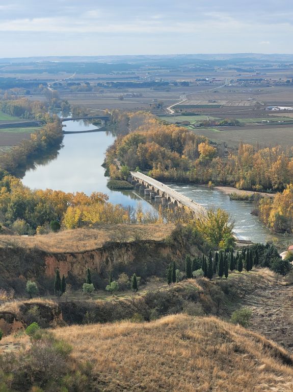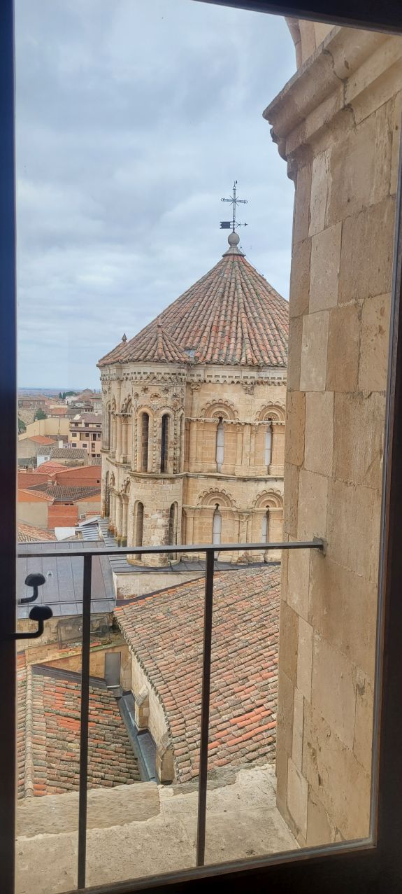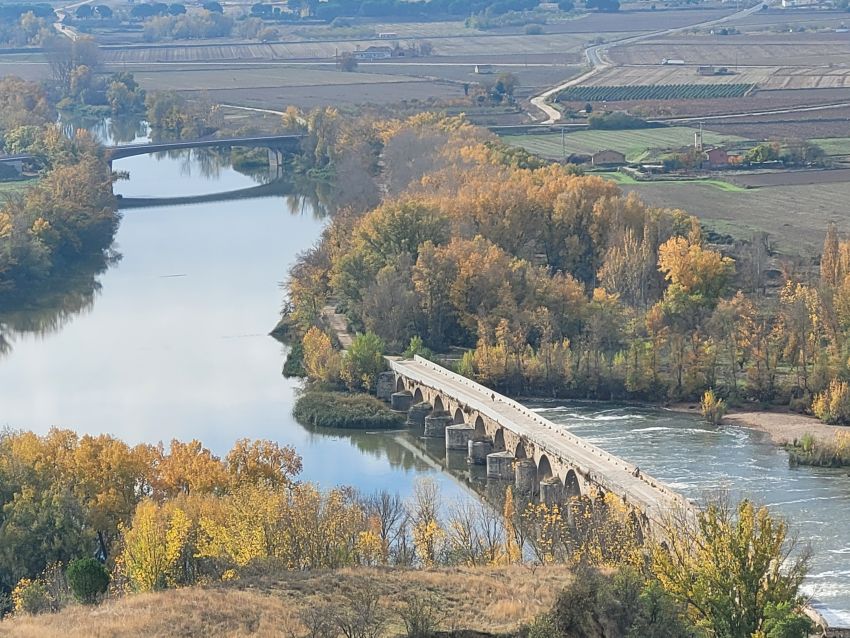 Desde el alcázar paseamos hasta la Colegiata por el Paseo del Espolón, con magníficas vistas sobre la vega del río Duero y el puente medieval, aunque en Toro se le llama romano porque quizás se asentara sobre un puente anterior de esa época. El actual data del siglo XII y es de estilo románico tardío, con sillería y arcos apuntados.