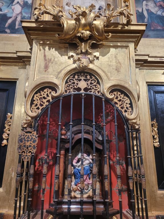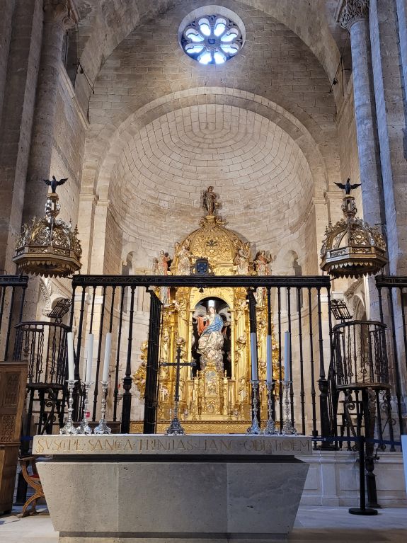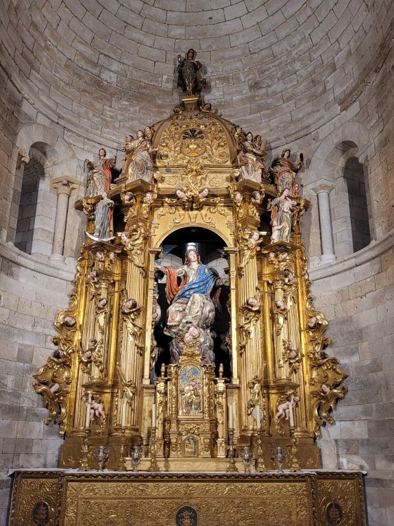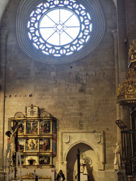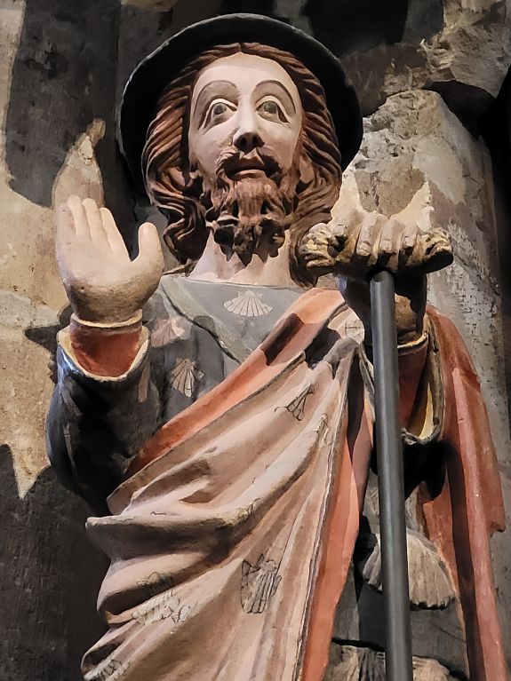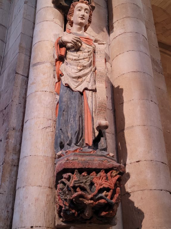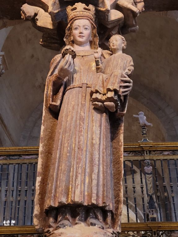 Dentro del templo destacan cuatro esculturas de mediados del siglo XIII adosadas a las columnas del segundo tramo de la nave central, que representan a San Gabriel, la Virgen embarazada, Santiago y San Juan, dos de las cuales habíamos ya contemplado en la Iglesia de San Cipriano como parte de la exposición de Las Edades del Hombre.
