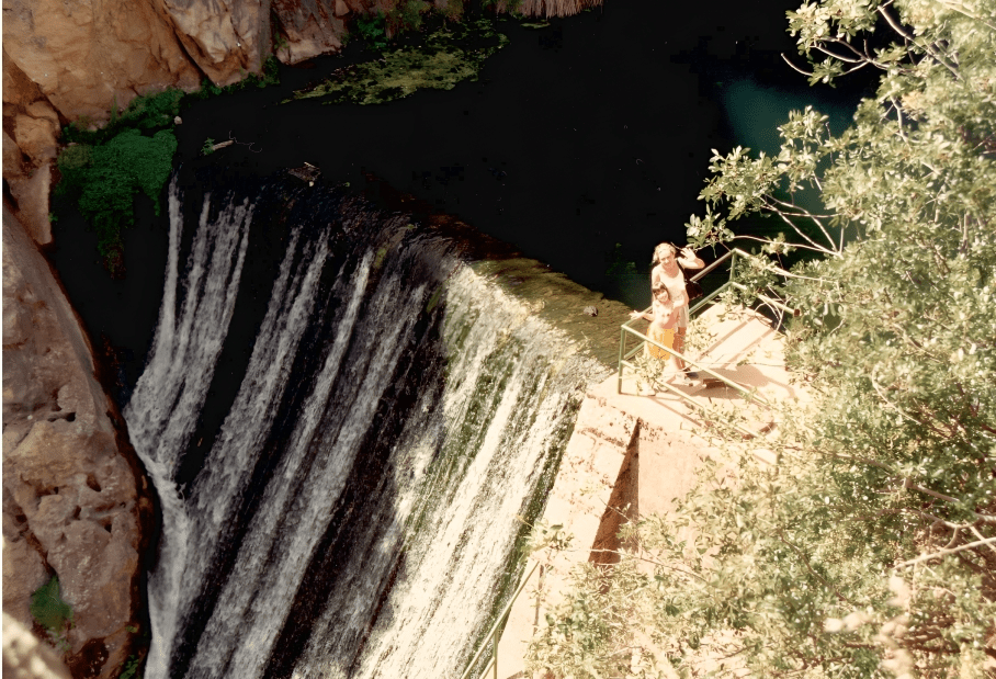 Uno de los días más intensos fue la excursión a la Cascada de Linarejos. Una vez aparcado nuestro coche en el puente que salta el Río Guadalquivir, nos encontramos una casa y un panel informativo de la ruta que vamos a realizar. Nos asomamos al Río Guadalquivir y divisamos la “cerrada” o estrechamiento entre paredes. El río discurre encajonado y forma el Embalse de la Cerrada de Utrero con una pequeña presa por la que descendemos por unas escaleras pegados al salto de agua. Frente a nosotros la divisamos la cascada de Linarejos.