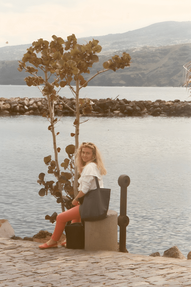 En la Playa de San Telmo el viento era más vivo. May se recogía el pelo mientras yo intentaba proteger los ojos del sol. Reímos por cosas pequeñas: la arena oscura pegada a los pies, la intensidad del oleaje, nuestra torpeza para encontrar el mejor ángulo en las fotos.