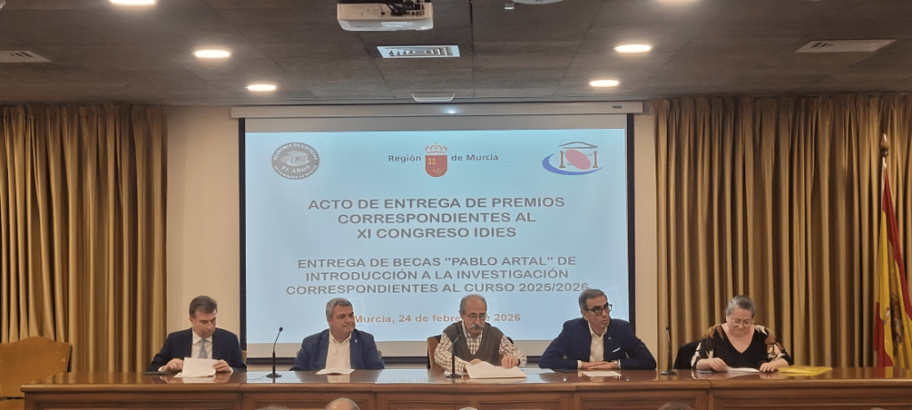 El martes 24 de febrero de 2026, a las 18:30 horas, tuvo lugar en el Salón de Actos del CEBAS‑CSIC, situado en el Campus de Espinardo, el acto de entrega de los premios correspondientes al XI Congreso IDIES, organizado por la Academia de Ciencias de la Región de Murcia. Este acto, que constituye uno de los hitos anuales más relevantes del proyecto, simboliza el cierre de una edición que se había clausurado oficialmente el 26 de junio de 2025 y que, como cada año, ha implicado un notable esfuerzo conjunto entre instituciones científicas, centros educativos, investigadores, profesorado y alumnado. En esta undécima edición han participado 199 alumnos tutelados por 194 investigadores, desarrollando un total de 68 proyectos de investigación distribuidos entre el CEBAS‑CSIC, la Universidad de Murcia, la Universidad Politécnica de Cartagena, el IMIDA, la Universidad Miguel Hernández de Elche y el Instituto Español de Oceanografía, lo que refleja la amplitud, diversidad y consolidación de la red científica que hace posible IDIES.