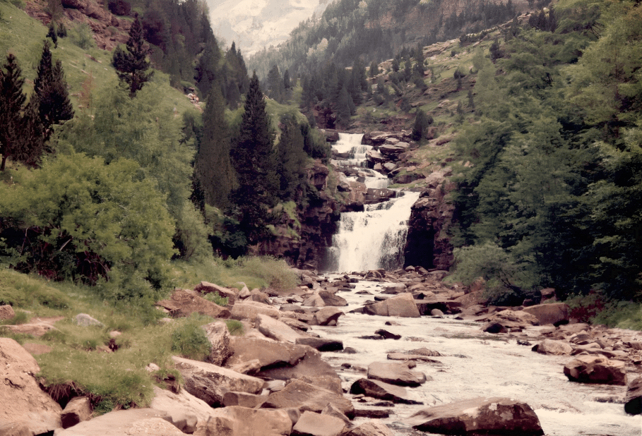 Aun así, llegar a las inmediaciones del Valle de Ordesa fue reconfortante. Aquellas paredes gigantescas, los bosques húmedos y el aire frío de la montaña nos devolvieron las ganas de caminata. Habíamos vuelto a las montañas que nos habían cautivado en 1990, y eso era todo lo que importaba en ese momento.