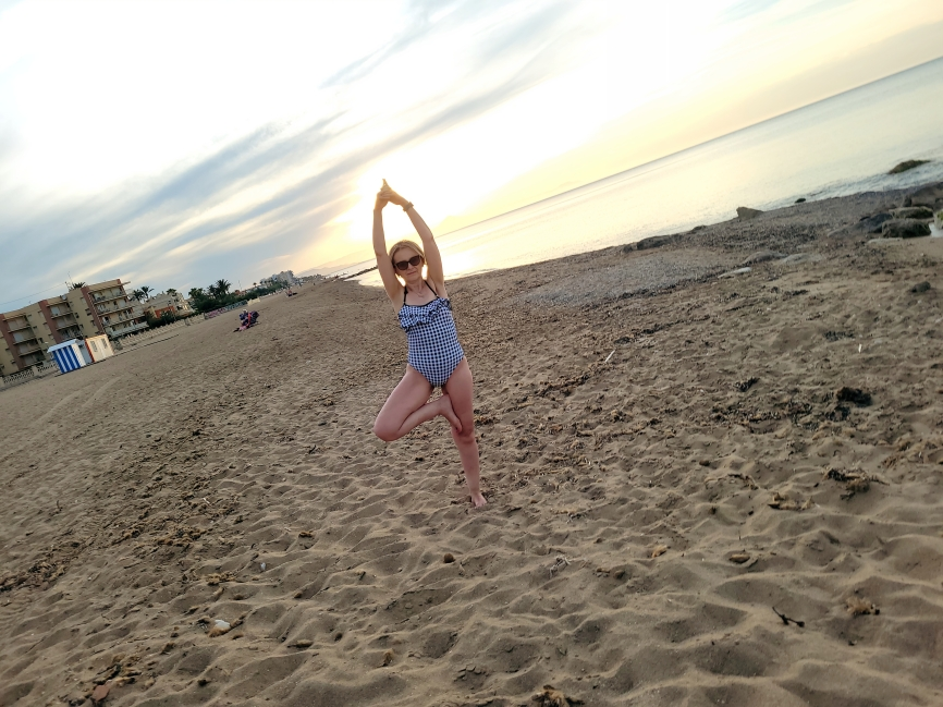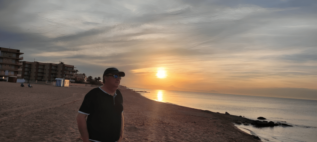 La playa nos recibió casi vacía, como reservada para nosotros. El sol, en su tramo más amable, pintaba la arena de tonos dorados. El Mediterráneo estaba sereno, con un movimiento apenas perceptible, como respirando lentamente.
