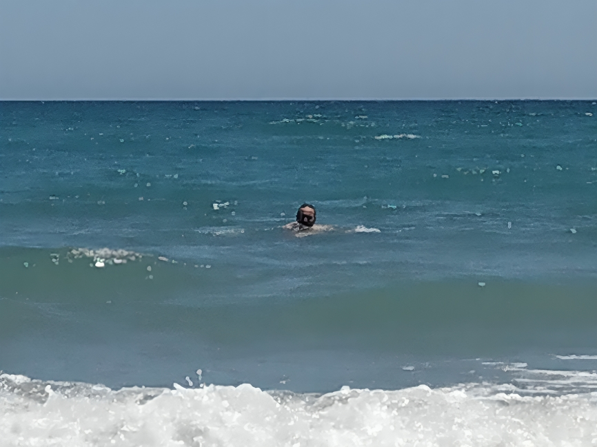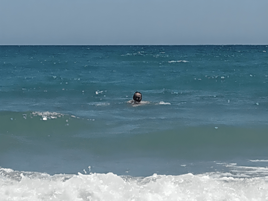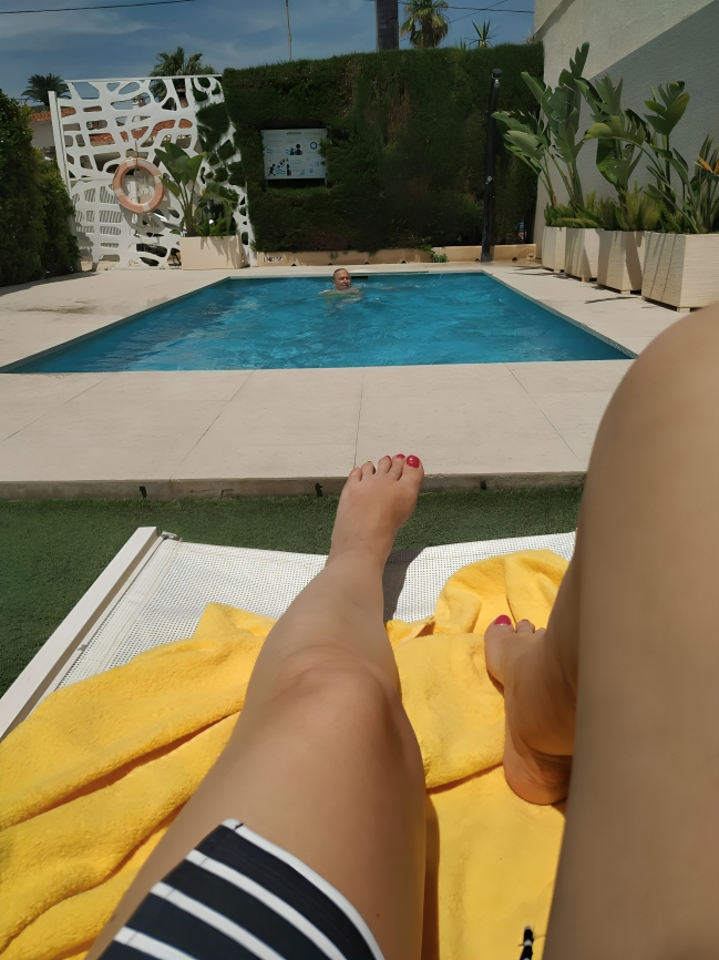 Nos bañamos (me bañé) despacio, sin prisas, dejando que el agua nos sostuviera.Había algo casi terapéutico en aquella calma: el mar templado, suspendido alrededor; la luz que se reflejaba creando destellos imprevisibles; el contraste entre la intensidad emocional del concierto, la exuberancia gastronómica de Dacosta y la absoluta sencillez de aquel momento.