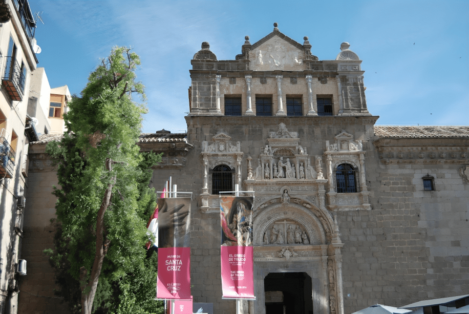 El día 15 lo dedicamos de lleno a descubrir la exposición. Empezamos temprano en el Museo de Santa Cruz, que recorrimos con calma antes incluso de adentrarnos en las salas de El Griego de Toledo. El edificio, un antiguo hospital renacentista, nos impresionó desde el primer momento: el patio toscano, los corredores porticados y la mezcla de piedra y luz le daban una dignidad silenciosa. En la colección permanente exploramos cerámicas, tapices, piezas arqueológicas y objetos mudéjares que narraban, en pequeño formato, la compleja historia material de Toledo. La cerámica de Talavera, con sus tonos azules y amarillos, nos recordó que el arte de la ciudad siempre había abarcado mucho más que la pintura del Greco.