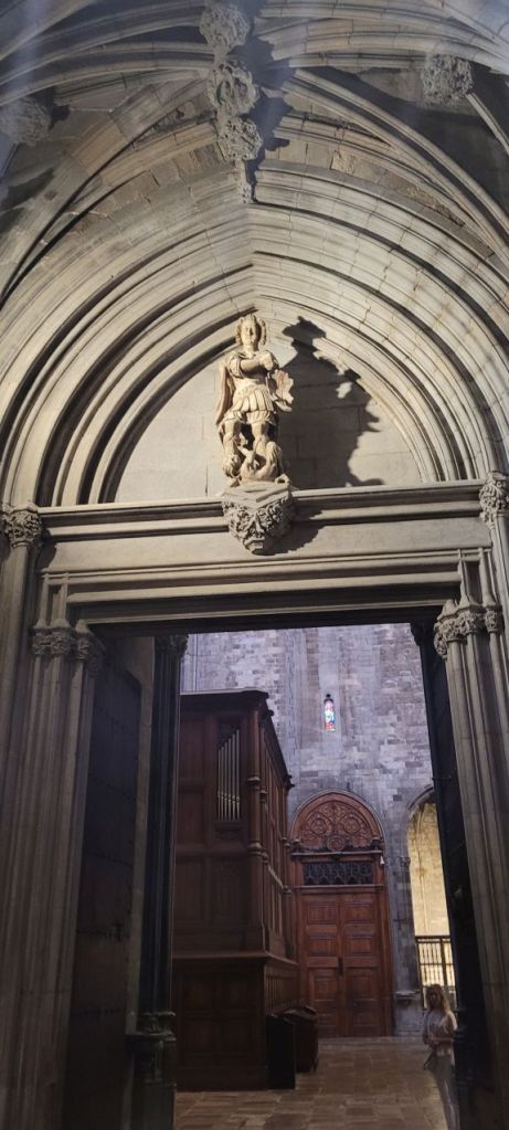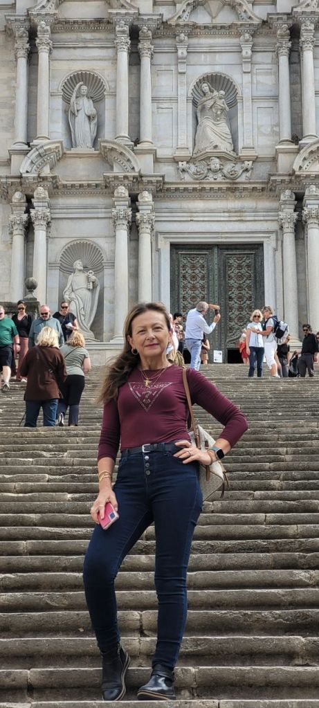 Decidimos que teníamos tiempo de visitar la Catedral antes de regresar al hotel para dirigirnos al restaurante. Situada en el punto más alto del centro histórico de la ciudad, conocido como el Barri Vell, la catedral de Girona constituye, junto con la iglesia de San Félix, la imagen más icónica de la ciudad.