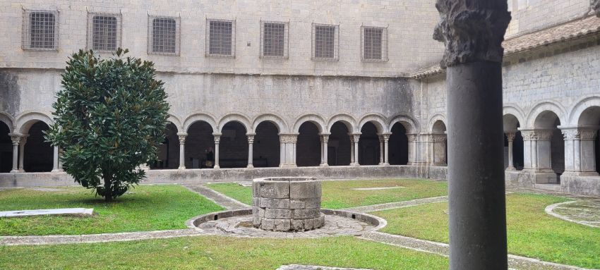 En el extremo norte se encuentra el claustro románico, construido por el escultor Arnau Cadell, que presenta una forma singular con doble columnata, y escenas de la biblia en los capiteles.