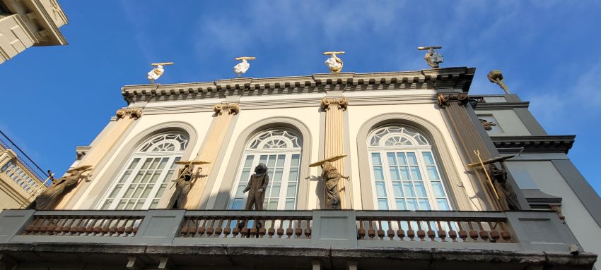 El Teatro-Museo se encuentra al lado de la iglesia de Sant Pere, donde Dalí fue bautizado.