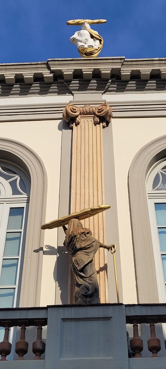 De nuevo encontramos figuras con barras de pan en la cabeza, esta vez en la balaustrada del balcón. Son cuatro mujeres de pie que se diferencian por sus actitudes y gesticulaciones. Podrían ser la invitación a una danza ritual.