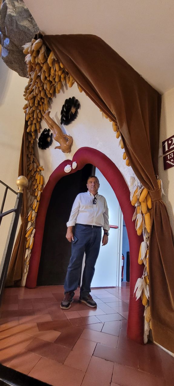 Bajando de nuevo al segundo piso encontramos la llamada Sala Antoni Pitxot. Dalí quiso que la exposición “Pitxot” se inaugurara conjuntamente con su Teatro-Museo y que se instalara de forma permanente aquí. La entrada a la sala es un enorme rostro antropomórfico (por indicación y deseo de Dalí y elaborado conjuntamente por ambos artistas) con las muñecas-niñas de los ojos, la muñeca sin cabeza como nariz, la cabellera formada por mazorcas de maíz y una voluminosa piedra escenográfica situada encima de la cabeza.