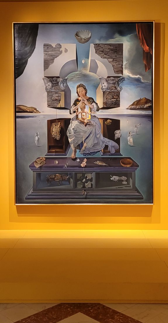 En el tercer piso podemos visitar la Sala de Obras Maestras, donde, con intencionado desorden cronológico, podemos ver algunas obras que Dalí fue coleccionando a lo largo de los años, de diferentes épocas y autores, junto con algunas de sus creaciones que el pintor calificaba de “obras maestras intemporales”.